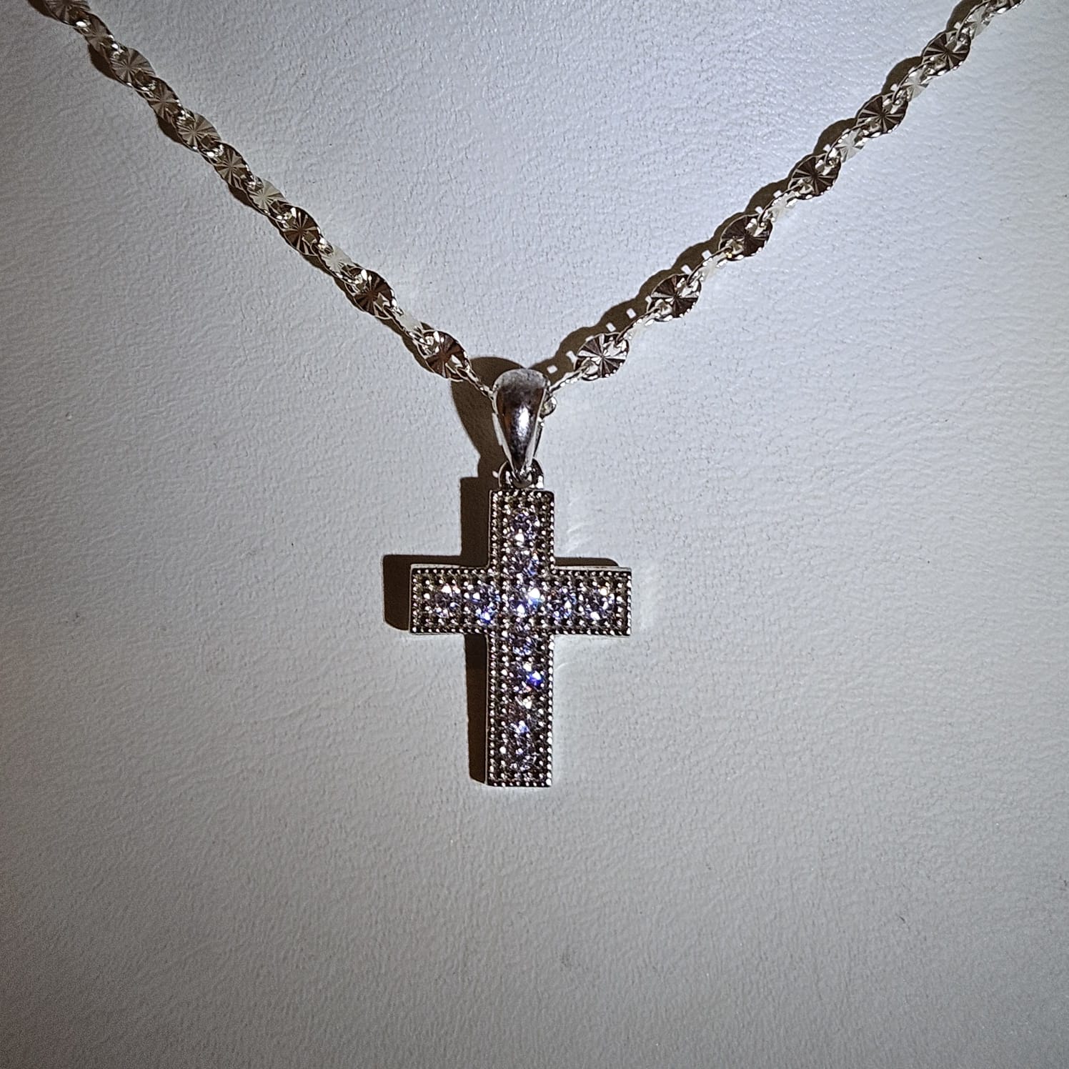 zilveren kruis ketting met zirkonia steentjes aantal